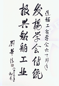 中國造船工程學會名譽理事長劉華清同志為學會成立60周年題詞